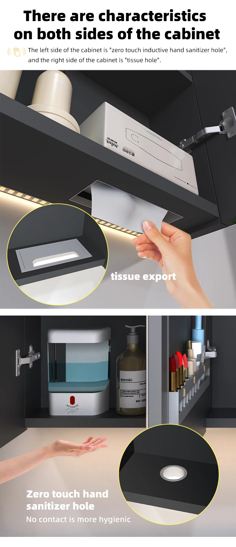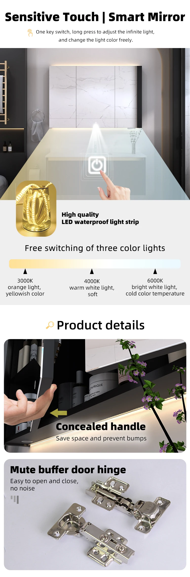 304# stainless steel 1. Cabinet Carcass : stainless steel 201 or 304 2. Cabinet Door : 4 MM environmental mirror, copper free |