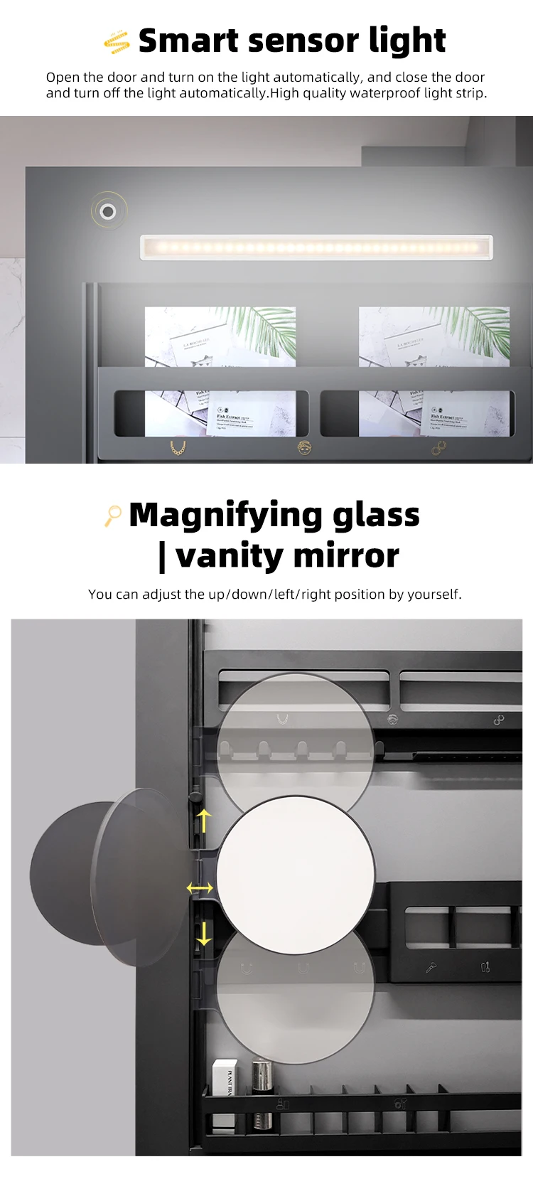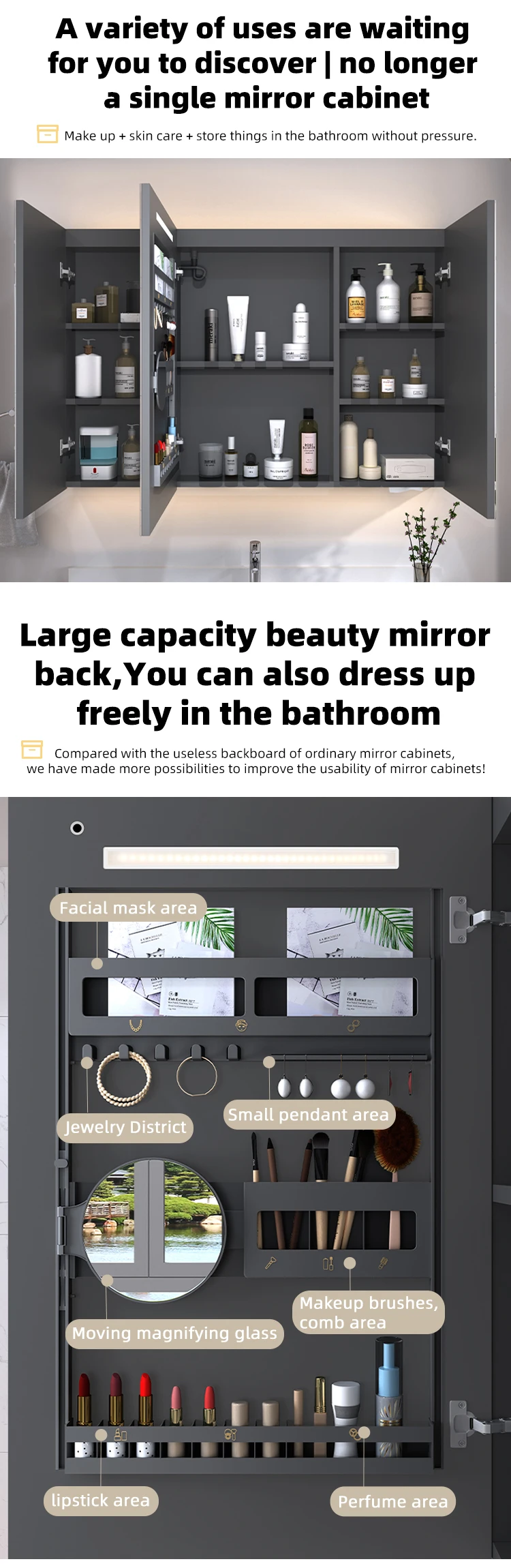 Matt Grey Stainless Steel Wall Mounted Mirror Makeup Lockable Storage Organizer Led Light Jewelry Cabinet