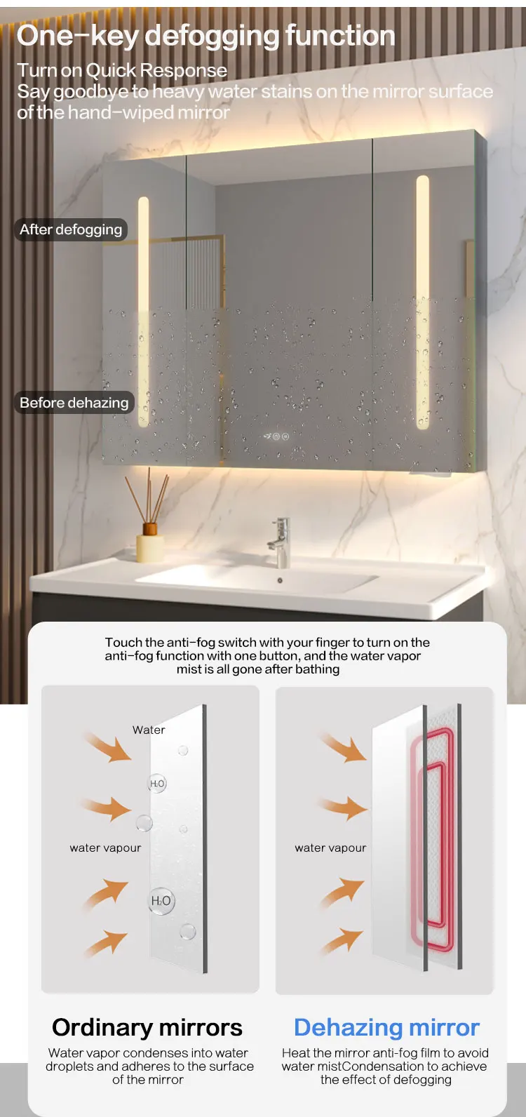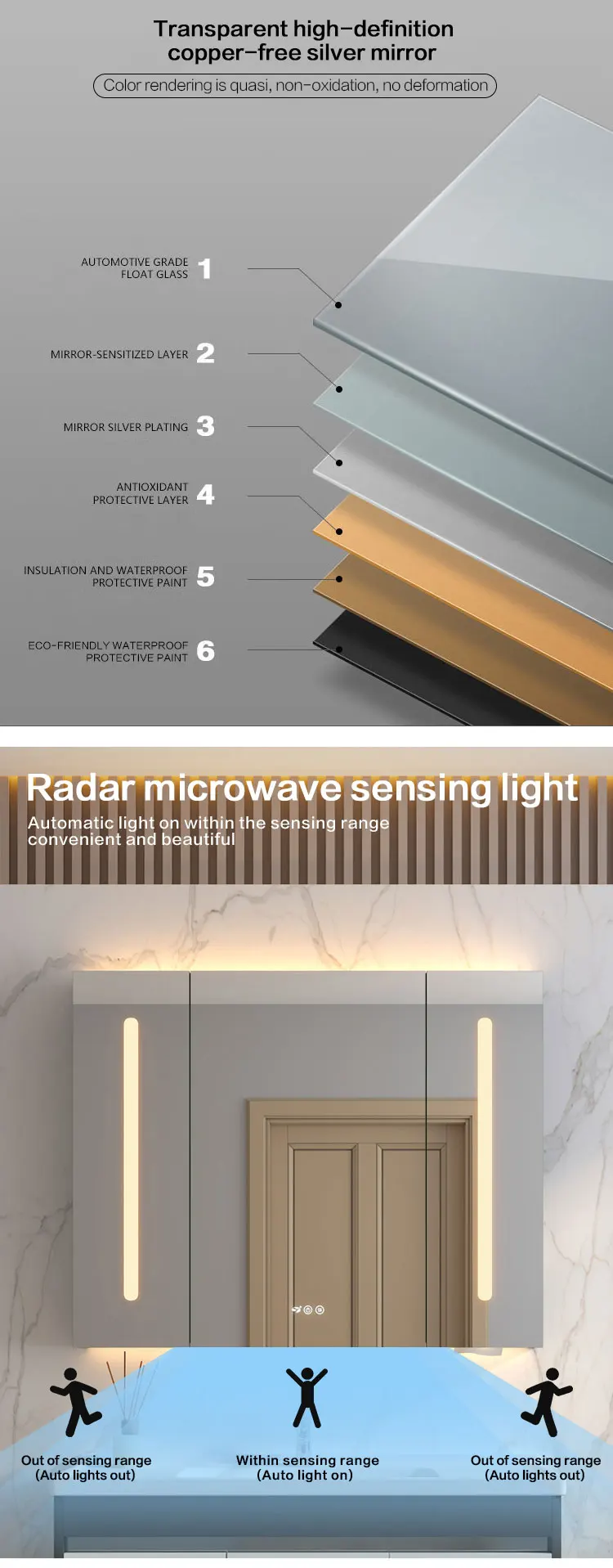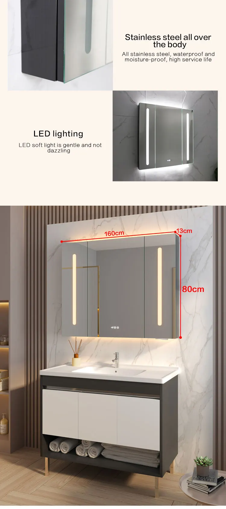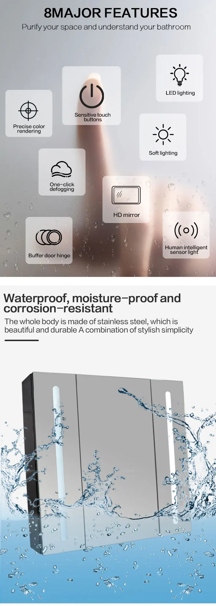 Led Stainless Steel Medicine Smart Bathroom Mirror Cabinet Waterproof With Smart Mirror Cabinet