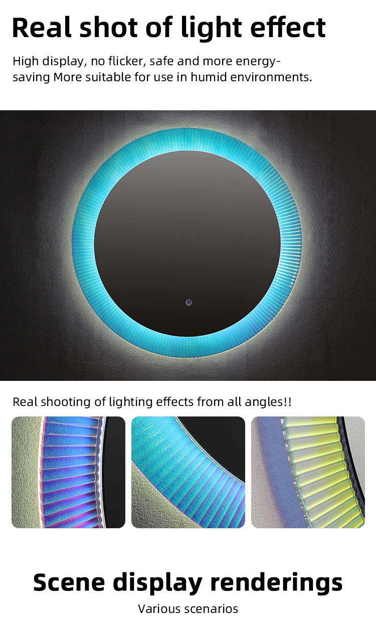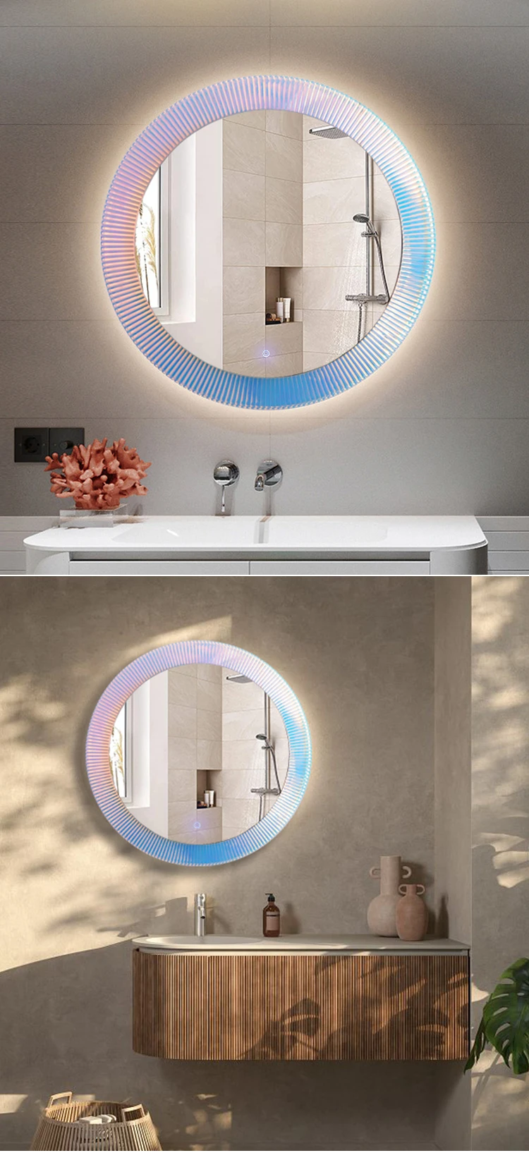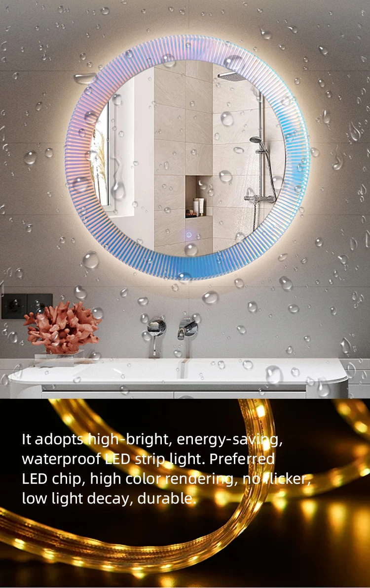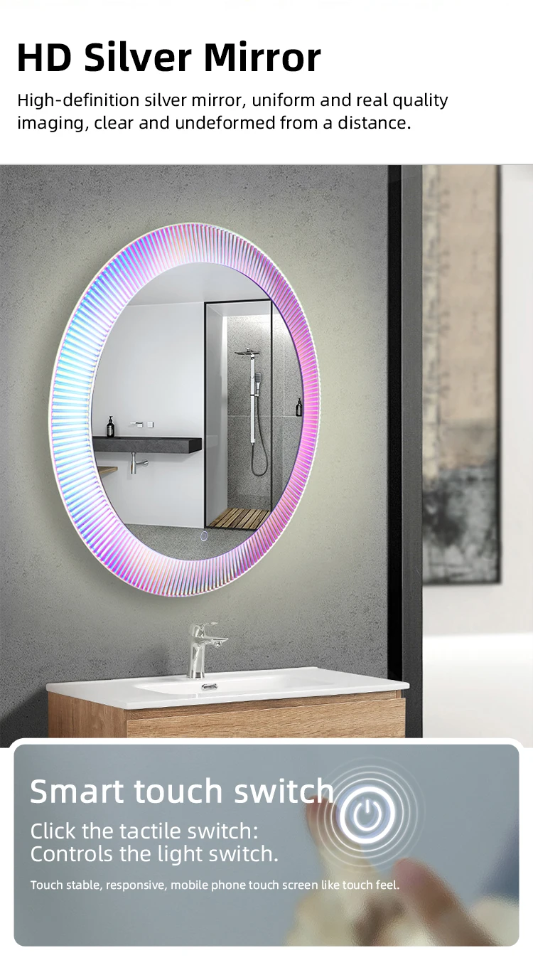 Round Led Makeup Smart Mirror Bathroom With Led Light Touch Screen Led Bath Smart Mirror for Bathroom