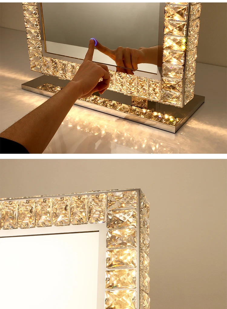 Crystal-Framed-Mirror Led Diamond Salon Crystal Mirror Light for Apartment Hotel Project