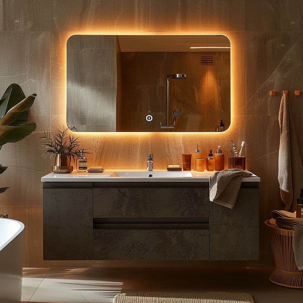 Modern Hotel Waterproof Marble Bathroom Vanity Mirror Lighting Double Sink Bathroom Vanity Set