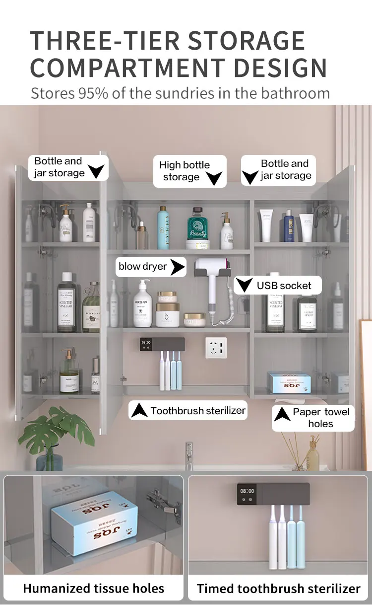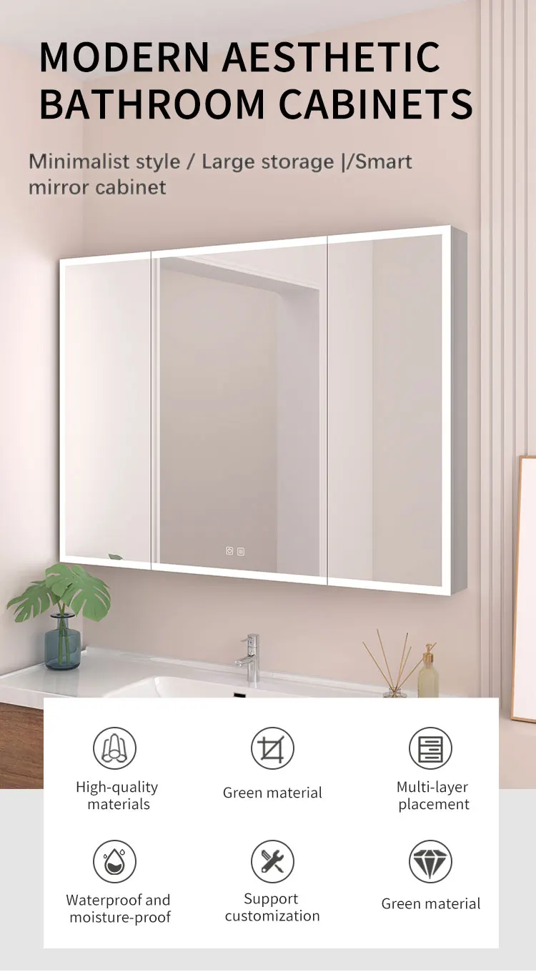 Modern Dressing Mirror Jewelry Cabinet Bathroom Smart Mirror Touchscreen Cabinet Set