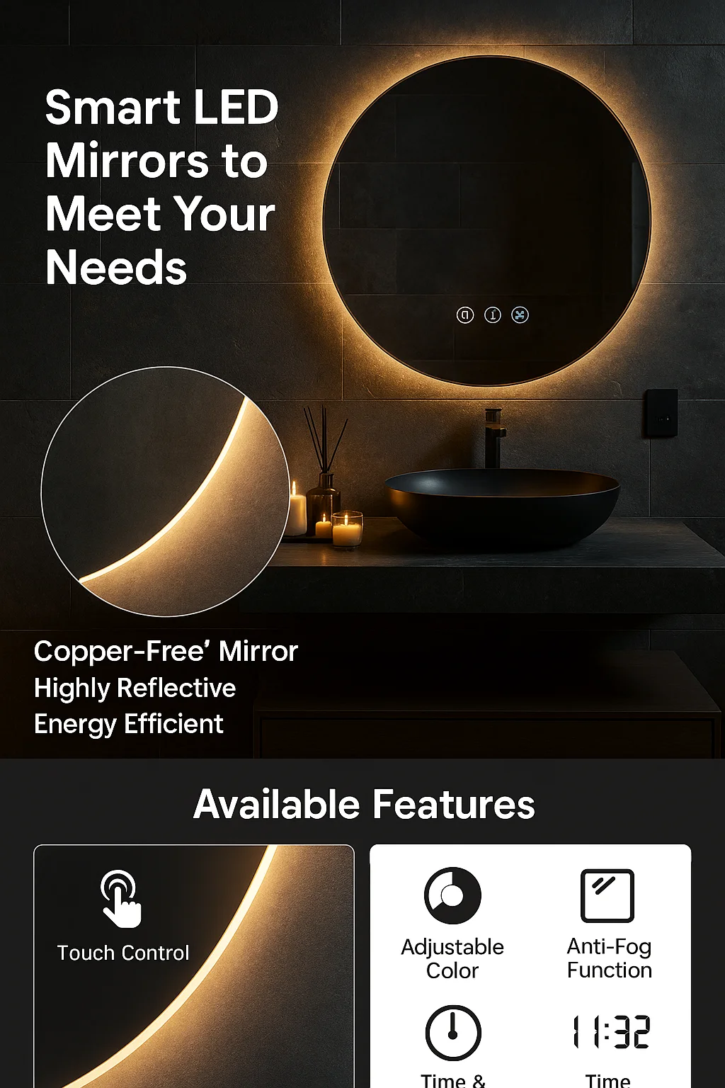 Luxury Round Wall Smart Led Backlit Bathroom Wholesale Smart Mirror With Light Touch Screen
