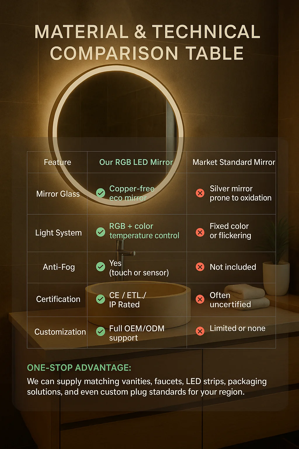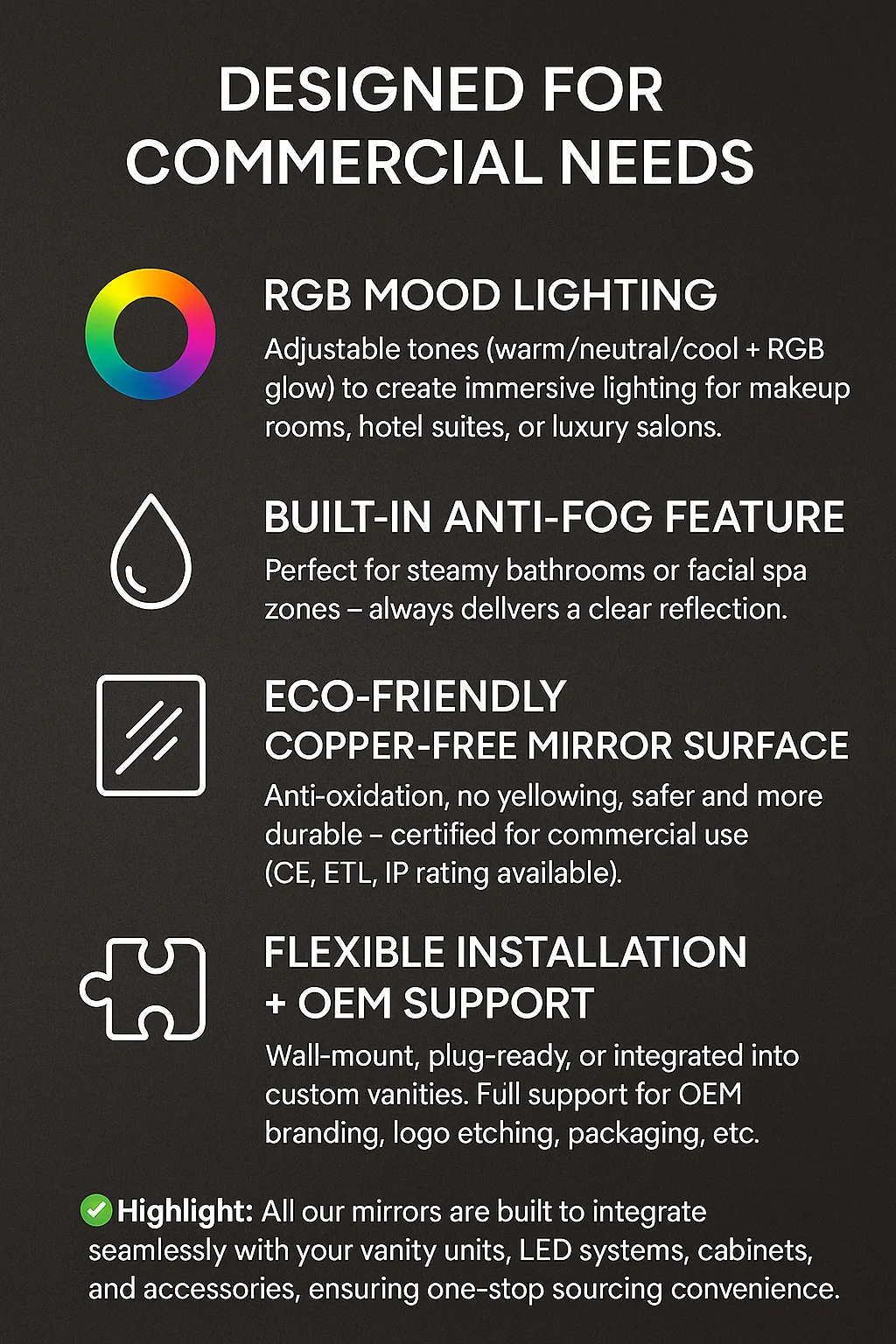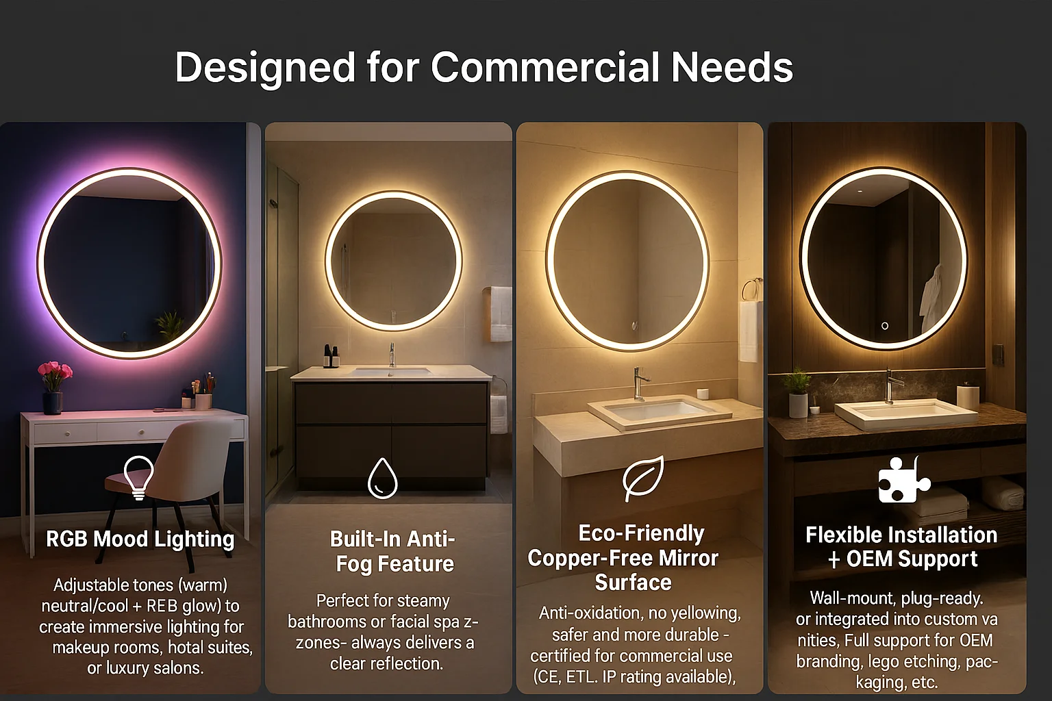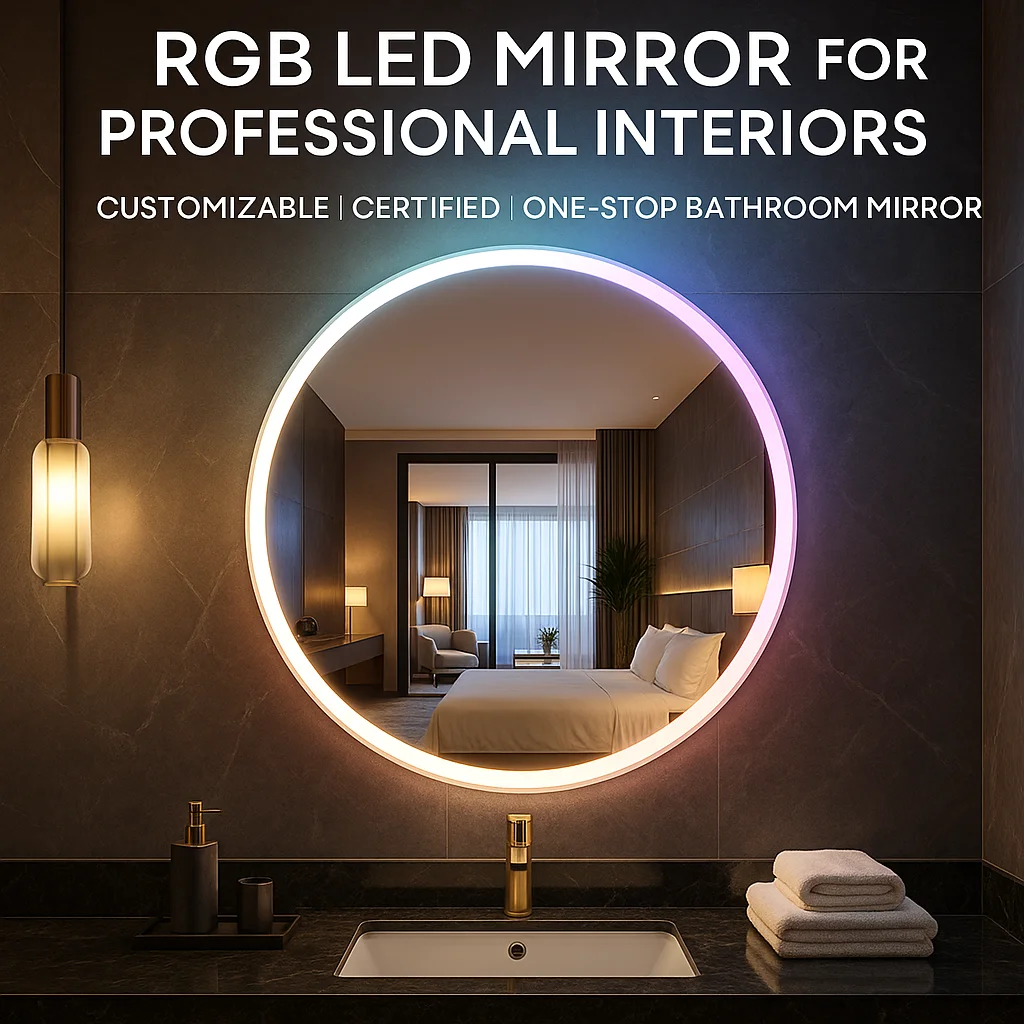 Frameless Rgb Backlight Led Mirror Lights Round Smart Bathroom Salon Mirror With Lights