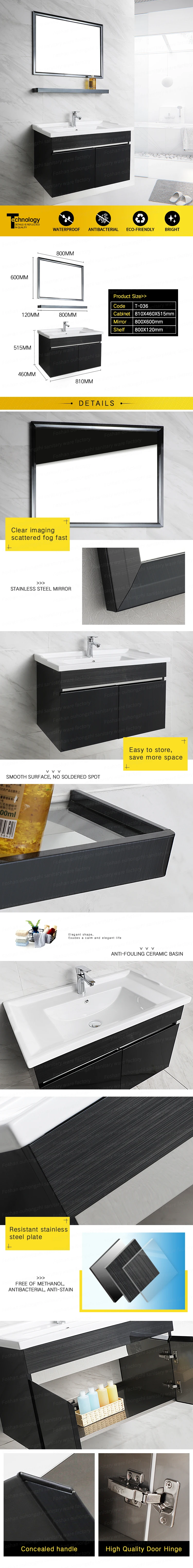 High Quality Bathroom Vanity Stainless Steel Black Color Bathroom Cabinet T-036