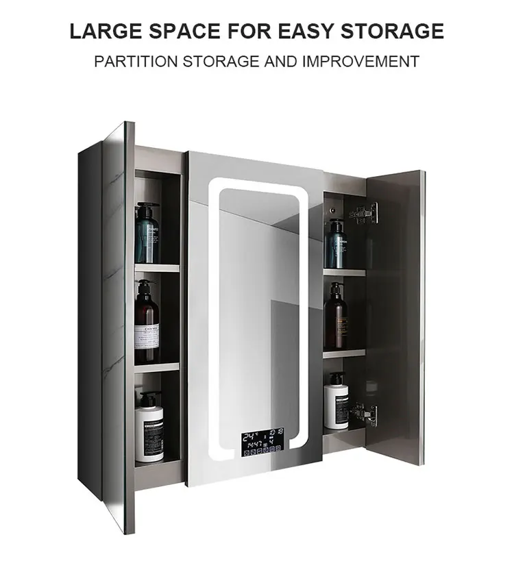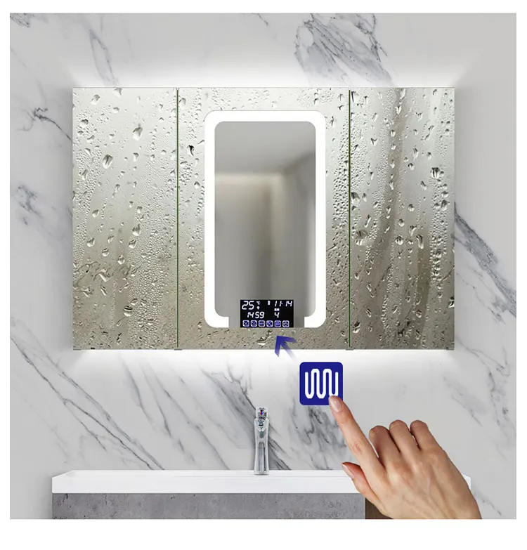 Speaker Bathroom Storage Smart LED Mirror Cabinet IP44 CE